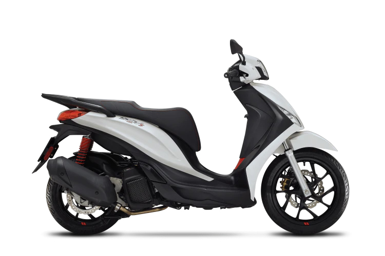 Medley S esprime la sua sportività con le finiture in nero opaco e alcuni componenti in color rosso. La sella sportiva dedicata completa la dotazione.